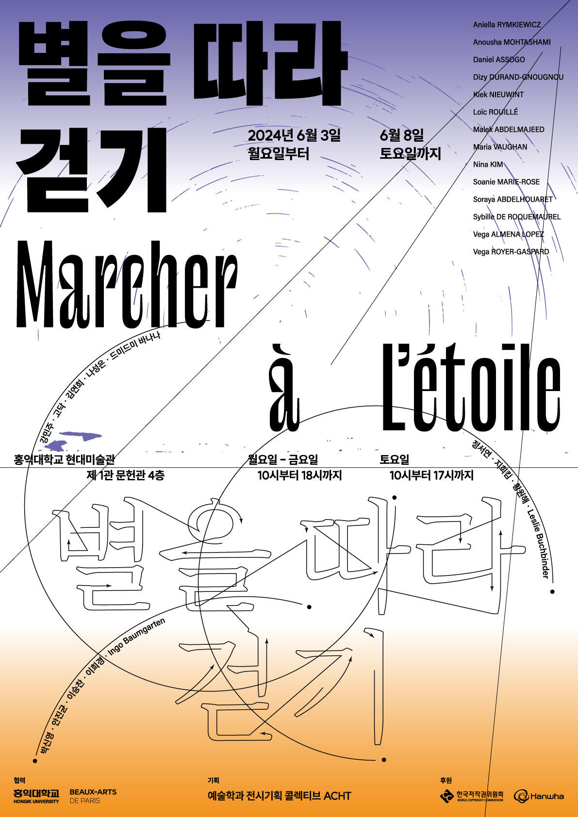 어둠이 내려앉은 사막, 동서남북은 의미를 잃고 눈앞엔 끝없는 모랫바닥만이 펼쳐져 있다. 이곳에서 우리는 오로지 하늘에 놓인 별에 의지한다. 이때 별은 하나의 길잡이일 뿐 목적지를 비춰주지 않는다. 그럼에도 우리가 별을 따라 걷는 것은 어쩌면 끝나지 않을 여정 속에서 뜻하지 않은 여로(旅路)와 마주할 그 순간을 고대하기 때문이다.프랑스의 사회학자 미셸 마페졸리(Michel Maffesoli, 1944~)에 따르면 인간은 무작정 다른 곳으로 떠나고자 하는 ‘방랑’의 욕구를 본성으로 가진다. 하지만 근대에 들어서며 ‘정착’이 인간 삶의 근간이 되는 절대적인 가치로 존재함에 따라 이 욕구는 억눌리게 되었다. 자기에게 주어진 것에 정착하기를 요구하는 정주(定住) 사회에서 유목민은 그저 사회의 경계를 벗어난 반역자이자, 탈선자일 뿐이다. 그러나 기술의 발전으로 확보된 ‘이동성’은 방랑에 대해 억압된 본성을 불러내었고, 점차 가속화되는 현대인의 유목화는 비선형적으로 부유하는 이들의 영원한 정착을 없앤다.노마디즘은 중심이 없어져 어떠한 것도 보장되지 않는, 불안정한 사회의 새로운 인식 틀이자 패러다임이다. 동시에 정주 사회에서 유목 사회로 급변하는 사회구조와 새로운 환경에 적응하기 위해 우리가 택한 생존방식이기도 하다. 세계의 불안정으로부터 예술의 동력을 얻어낸 노마드 예술가는 기호와 형식을 탐험하며 자신의 정체성을 끊임없이 생성하고 변화시킨다. 미술 작품 역시 더 이상 완결된 물체가 아니라 연속된 한순간으로, 한 궤적에 놓인 다양한 에피소드들을 연결하는 ‘봉합 지점’이 된다.별을 따라 움직이는 유목민은 자신만의 길을 만들며 걸어간다. 각자 다른 목적지를 향해 걸어가는 이들은 점(點)에 머물기도, 때로는 선(線)상에서 이동하기도 하며 무한한 가능성에 스스로를 내맡긴다. 규칙적이면서도 변덕스러운 발걸음 하나하나는 삶을 향한 적극적이고 주체적인 탐험에 대한 열정이 서려 있다. 본 전시는 모래와 별 사이를 계속해서 유랑하는 노마드 예술가의 여정으로 초대하여 그 아래에서 함께 걸어보기를 제안한다.